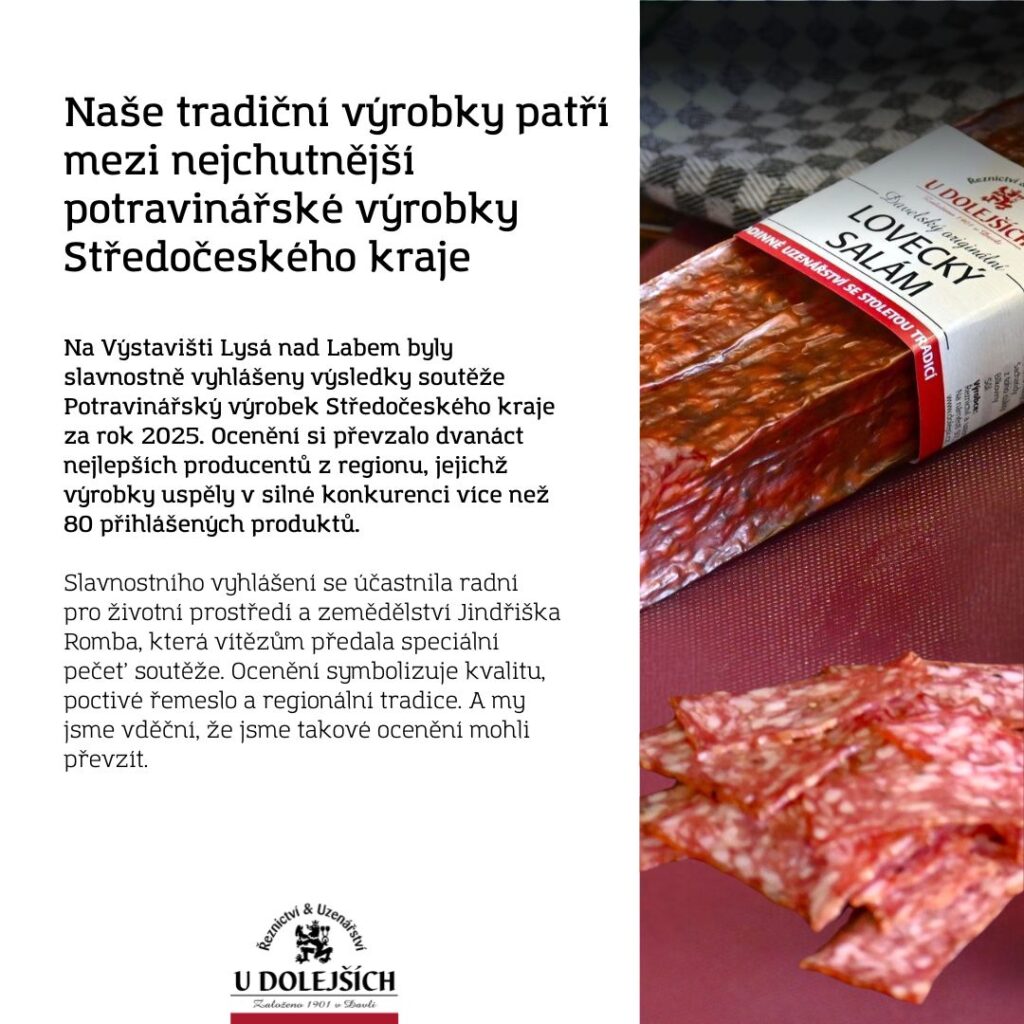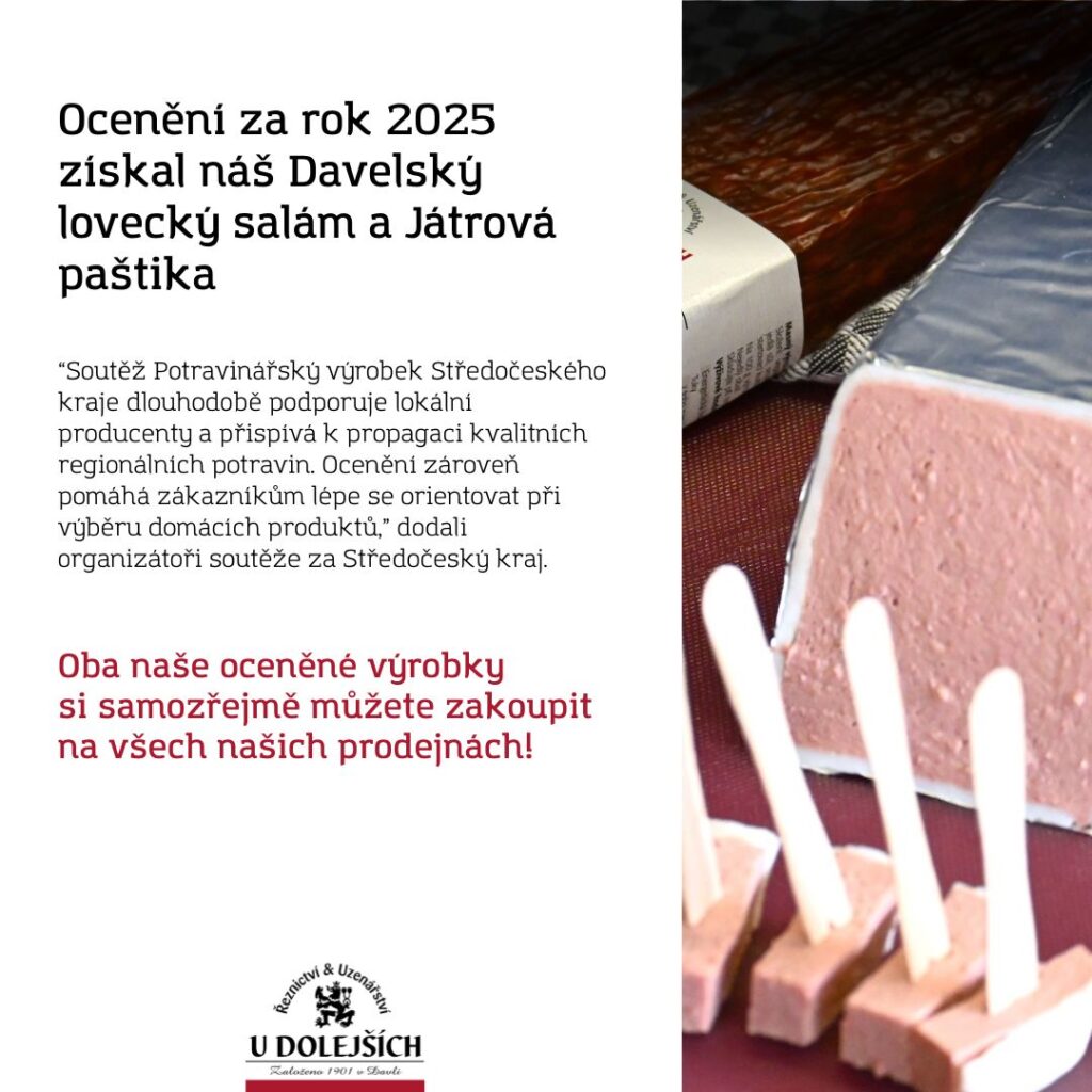 Lovecký salám a Játrová paštika z Davle jsou výrobky, které se staly potravinářskými výrobky, kterým odborná porota udělila titul Potravinářský výrobek Středočeského kraje.